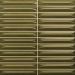 Como el resto de la gama Nairobi de la colección Arrow, cada pieza de 20×20 cm lleva marcadas de fábrica las líneas de precorte que la dividen en tiras de 1,5×10 cm, separables a mano sin necesidad de cortadora. El formato Kit Kat del Nairobi Arrow Moss —tiras estrechas de menos de dos centímetros de ancho— genera en pared una textura acanalada que, en el caso del moss brillo, produce un efecto visual de gran riqueza: la luz rebota de forma diferente en cada tira según el ángulo de incidencia, lo que hace que la pared parezca tener textura y relieve aunque la superficie sea completamente plana. La variación tonal entre piezas puede ser más apreciable en tonos oscuros como el moss; se recomienda siempre mezclar piezas de distintas cajas del mismo lote antes de instalar.